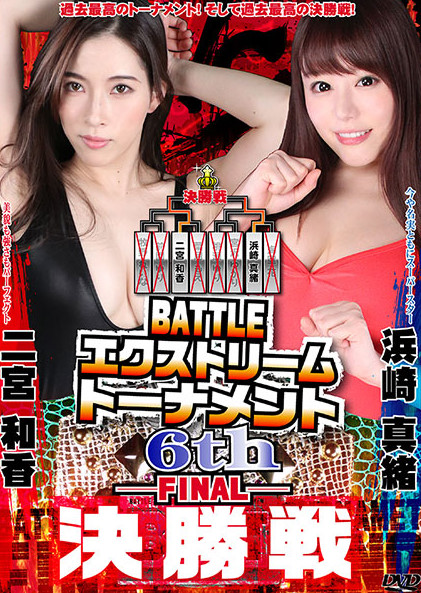 過去最高の豪華&強豪選手が揃った今回のエクストリームトーナメント、ついに決勝戦。あまりにも参加選手が豪華メンバーだったため、過去の大会であれば優勝できたかもしれない選手が一回戦で姿を消してしまうほどに… そんな過去最悪のサバイバルを勝ち抜いてきた選手は、大会前の時点では実力では無くビジュアル重視と思われていた二人。しかも、どちらもデビュー当時はトップレスを強要されエロ要員扱いされていた。しかしそんな周囲の評価を覆すような見事な戦いを見せ、強敵を破り勝ち上がってきたのだ。まずは二宮和香。その華麗なルックス、見事な巨乳とスタイルで「ミス・パーフェクト」の異名をとり、戦いぶりもしなやかな身体を活かし華麗である。当初は、あまり投げ技を得意としておらず、絞め技を中心として攻撃を組み立てていたが、準決勝では見事なスープレックスを披露し、強敵・前園ゆりを撃破。決してビジュアル先行ファイターで無いことをみせつけた。そして、浜崎真緒。こちらも抜群の可愛らしいルックスと巨乳を誇り、スターのオーラに満ち溢れた選手。一回戦からいきなり強敵・海空花との戦いを強いられるなど、決して「決勝への切符がお膳立てされたいた」わけでは無かったが、彼女も見事なスープレックスを放ち、またユニークなオリジナル技を数々持つ素晴らしい実力をみせ強敵を打ち破ってきた! エクストリームトーナメント初のWエース対決となった今回の決勝戦は間違いなく過去最高の名勝負である! 正統派ベビーフェイス同士の対戦であるが、しかしこの試合は「エクストリームトーナメント」なのだ。このまま爽やかに決着を迎えることはありえない…!!