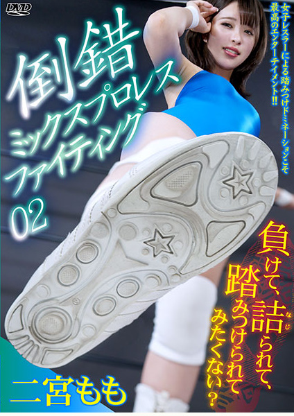 今回のファイターは内に秘めた痴女性が大爆発する二宮ももが、男に対してリビドー垂れ流しの攻撃を仕掛ける!! 最初は男子レスラーの意表を突いた攻撃で劣勢を強いられるが、これもこの後の展開に対するスパイスでしかない! 逆転してからは一方的展開で男子レスラーをリングに沈める。しかし懲りもせず再び挑んでくる男子レスラー。とは言え前日から特に成長している訳ではない男子レスラーは二宮にあっさり敗北する。散々痛めつけられた後はお待ちかねのご褒美…いやお仕置きタイム! リングシューズや、シューズ脱ぎたてのソックスや素足で踏まれまくり!!
